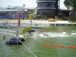 On the first loop, I was swimming together with everyone in the large group and I had my first feeding at the feeding station. But, when I get dunked by others around the turn buoys, it affects me because my hips go down and I have no kick. In the second half, I moved up to third during the third loop and tried to stay with Larisa (Ilchenko of Russia). It's easy to keep the same stroke when swimming with Larisa because she is so smooth. I had my second juice on the third lap. We started to get faster on the last lap and then the sprint started. The Spanish girl just out-touched me at the end (for third), but I went out and give it everything I had."
