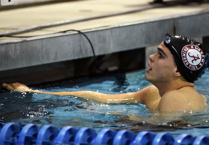 Alexander Sukhorukov, who stands 18th in the world with a 1:47.39 from Russian Nationals in the men’s 200-meter free, won tonight in 1:48.15. Australia’s Kurt Herzog touched second in 1:48.21 with Trojan’s Cristian Quintero placing third in 1:48.44. California’s Seth Stubblefield touched in 23.09 to top the men’s 50-meter free with Redlands’ Joey Hale claiming second in 23.11. Utah’s Nick Soedel placed third in 23.24.
