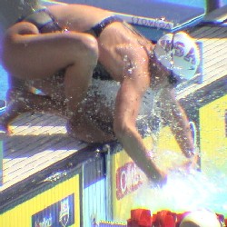 Unchallenged, Beard gave it her all on the final lap, falling only 36-hundredths of a second short. Still, her 2:23.32 was a US Open and Trials record, and the world’s number two performance of 2004, setting up an anticipated duel in Athens.