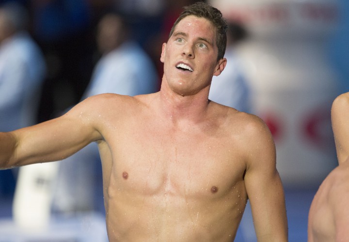 No matter. Dwyer’s 1:47.86 tonight in Charlotte spoke volumes. It’s true that Dwyer had little competition tonight (save for a closing rush by training partner Matt McLean) with Lochte out of the meet, Phelps scratching the event and Yannick Agnel disqualified for a false start. It gave Dwyer some time to step out of the shadow, and I have a feeling he won’t be an also-ran anymore.