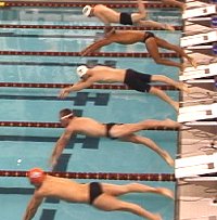 Kevin Clements of Auburn was fourth in 1:58.06, Steven Brown of Stanford fifth in 1:58.52, Joe Montague of Texas sixth in 1:59.32, Zane DeWitz of Tennessee seventh in 1:59.49 and Jeffrey Somensatto of Auburn eighth in 2:01.09. Tamas Kerekjarto of Southern Cal won the consolation final in 1:58.23.