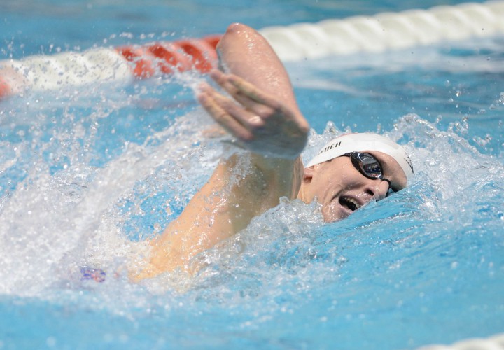 The first night of competition at the Plantation Aquatic Complex featured timed finals in the women’s and men’s 1500 freestyle, 200 medley relay and 200 free relay. Club Wolverine’s Emily Brunemann collected the first title up for grabs, touching first in the women’s mile by 15 seconds in 16:54.73. Melissa Marinheiro of South Florida claimed second place honors with a time of 17:10.38, while Daniella Vandenberg of Azura Florida Aquatics rounded out the top three in 17:59.44.