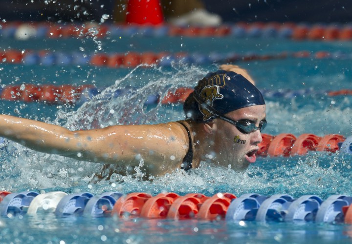 Icelandic National Teamer Johanna Gustafsdottir, who swims for FIU, took down the first meet record of the night with a swift 1:57.94 in the women’s 200-yard IM. That swim eclipsed the previous mark of 1:58.08 set by SMU’s Therese Svendsen back in 2012. Gustafsdottir’s performance also led a foursome of NCAA B cuts in the event. Rice’s Shelly Patton picked up second in 1:58.99, while WKU’s Nadine Laemmler (1:59.92) and Allie Duff (2:01.41) also posted provisional times.