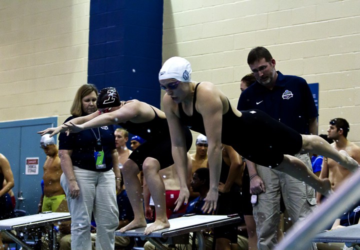 Queens’ Peiffer raced her way to another meet mark with a 53.95 in the women’s 100-yard fly. That swim beat her preliminary mark of 54.52 as she continued piling on the points for the host team. Josa then kept up the Queens momentum with a blistering 46.60 in the men’s 100-yard fly, eclipsing his preliminary swim o f47.88. Josa already set the 200 back NCAA Division II record earlier this season with a 1:43.03 in Knoxville, and is just a second off Ben Michaelson’s 45.60 in the 100 fly from well back in 2003.