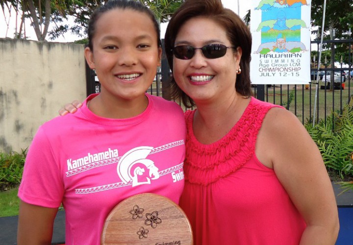 In the women’s 100 free, Kamehameha’s Jasmine Mau, who is committed to swim at UC-Berkeley, clocked in at 49.34 for first. Scottsdale Aquatic’s Victoria Toris hit the wall in 49.99 for second, just ahead of Mount Hood’s Jamie Stone (50.04).