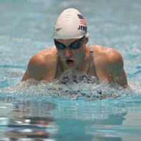 Another WUG member won the next event, as Sydney Olympic champion in the 100-meter breaststroke, Megan Jendrick (King), took first in the women's 200-meter breaststroke in 2:29.71. Jendrick won convincingly over 14-year-old Christine Olson (SDA), who touched the wall in 2:34.75, just keeping Jessica Embick (MHST) off her heels. Embick finished in 2:34.95.