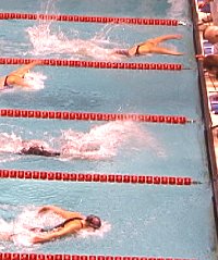 Limin Liu of Nevada was the outside smoke winning from lane 2 in 57.97. Misty Hyman used her underwater skills to finish second while Yeo finished 3rd fresh off her leg of the 200 Medley Relay. Voitovitsch and Younglove from UCLA came in 4th and 5th. Cope from Cal was 6th, Panighetti of Wisconsin 7th and Baham from AZ State rounded out the top 8.