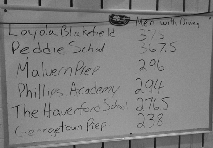 Peddie went into Saturday’s finals with a 2.5-point lead over Loyola Blakefield, but lost that lead in the night’s first event, the 100 freestyle, and couldn’t relinquish it. It was not the overwhelmingly dominant performance that Peddie had last year when the boys won all but one swimming event, as five schools won boys’ titles. Loyola Blakefield, who placed third last year, takes the team title back to Towson, Md., with a score of 375 points to Peddie’s 367.5. In third overall was Malvern Prep, last year’s runner-up, with 296 points. They beat Phillips Academy by just two points for third place.