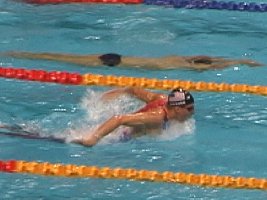 In other women's highlights, China's 16 year-old Qi Hui won the 100m breast in 1:07.00, just ahead of the USA's Amy Balcerzak, who finished in a strong 1:07.25. Former East German Wundermadchen, Sylvia Gerasch, now a 31 year-old Wunderfrau, was third in her seasonal best, 1:07.57.