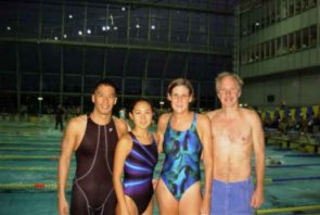 Led by double gold medalist Martha Stanton, 45, the team returned to Okinawa with six medals. Stanton cruised to first place finishes in the 200 meter freestyle (2:29.92) and set a new Japan Masters national record for women 45-49 in the 200 meter backstroke (2:53.30).