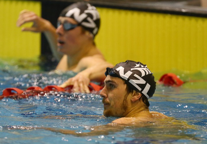 New Zealander Matthew Stanley is one of those young talents. Stanley is the national record holder in the 200 and 400 freestyles, and won the 200 free today in 1:49.76. That’s slightly off his national record of 1:47.16, and just five tenths slower than what he swam at the New Zealand championships last month to earn a spot on the Commonwealth Games and Pan Pacific championships teams. Placing second today was New Zealand’s Steven Kent with a 1:49.84 after leading by four tenths at the 100-meter mark. Damien Fyfe of Australia took the bronze with a 1:53.32.