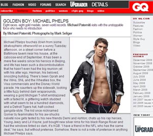 Michael Paterniti goes in-depth with Phelps in a feature on GQ's web site during which Phelps talks about some of his past in swimming, but also how he's handling the mainstream spoils of success like friendships with Demi Moore and Ashton Kutcher as well as some of his newly-purchased toys.