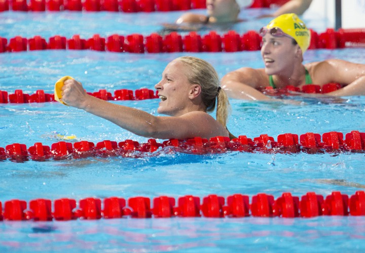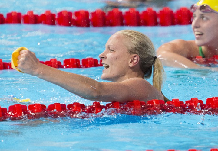 Jennie Johansson smashed the field in the women’s 100-meter breaststroke, coming within half-a-second of her eighth-ranked season best of 1:07.14 as well. Johansson topped the event tonight in Sweden with a 1:07.54, more than two seconds ahead of Vilma Ekstrom’s second-place time of 1:10.13. Jessica Eriksson finished third overall in 1:10.76 with Jessica Billquist also posting a 1:10 with a fourth-place 1:10.98.