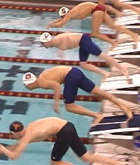 Stanford junior Steven Brown qualified first in the 200m fly with a 1:55.93, ahead of Virginia senior Doak Finch at 1:56.37 and Stanford junior Adam Messner at 1:56.44. Auburn junior Jeffrey Somensatto was fourth in 1:56.65, Arizona freshman Jeff Dash was fifth in 1:56.89, South Carolina sophomore Zsolt Gaspar was sixth in 1:56.90, and Florida sophomore Duncan Sherrard was seventh in 1:57.10. Central Connecticut State senior Marcin Kaczmarek was eighth in 1:57.37. Gaspar was fourth in the 100 fly last night, and Somensatto was eighth.