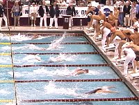 Texas increased its lead in the team race with a triumph in the 200 medley relay after an exceedingly close battle with Arizona, Tennessee and Auburn. Junior Matt Ulrickson, senior Russell Chozick, junior Nate Dusing and senior Bryan Jones set a new American record of 1:35.66, breaking the 1:35.86 mark the team had set in the morning. Ulrickson took the lead on the first 50, with it switching several times before Dusing regained the advantage and Jones brought it home.