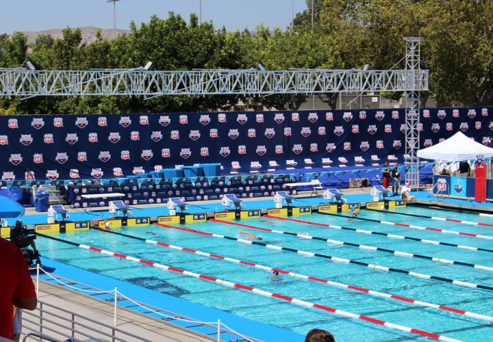 SwimMAC’s Kathleen Baker ran right through that open door with a 2:10.42 to make the Pan Pacific squad in the event from out in lane 1. Tri-City’s Lisa Bratton earned third in 2:11.57.