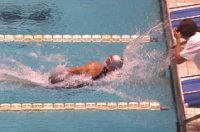 Bill Specht had the fastest time of 1:55.45 on his way to winning the 40-44 age group. Tod Spieker, of the Olympic Club, took nearly a second off his own 50-54 record of 2:05.90, finishing in 2:04.82. Richard Burns of Tamalpias Masters posted a new record in the 55-59 age group with a 2:13.89 which erased Ed Cazalett's 1998 record of 2:15.33. In the 65-69 age group, Don Brown swam a 2:30.03 to slip past Roger Frank's 1993 record of 2:30.53. Ray Taft continued on his record smashing binge with a 3:06.53 to knock 6 seconds off the 3:12.35 80-84 record held by Ed Shea.