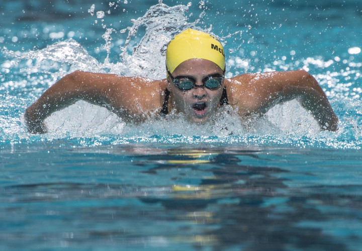 McLaughlin had an amazing night in Riverside. She won the 200-yard free in 1:44.66 and the 100-yard fly in 51.78 with the fly being the newly-minted national high school mark in the event.