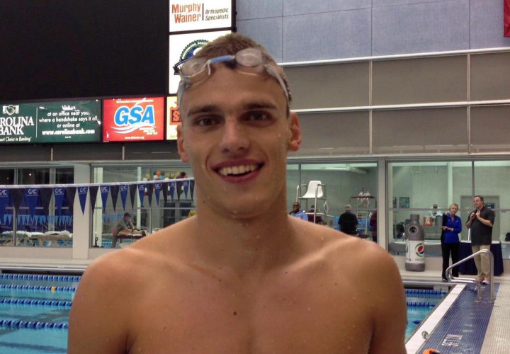 Sankovich, Jared Pike, Connor Knight, and Murray combined to swim a time of 3:04.47, almost three seconds under Virginia Tech’s conference and meet record posted a year ago. NC State, with Schiellerup, Ian Bishop, Barrett Miesfeld, and Jonathan Boffa, who anchored in 41.31, touched second in 3:04.80, also under the old meet record, while Virginia Tech’s Morgan Latimer, Brandon Fiala, Nick Tremols, and Joe Bonk grabbed third in 3:08.26. Virginia (3:08.64), Notre Dame (3:09.50), and North Carolina (3:09.65) all picked up “A” cuts in the event.