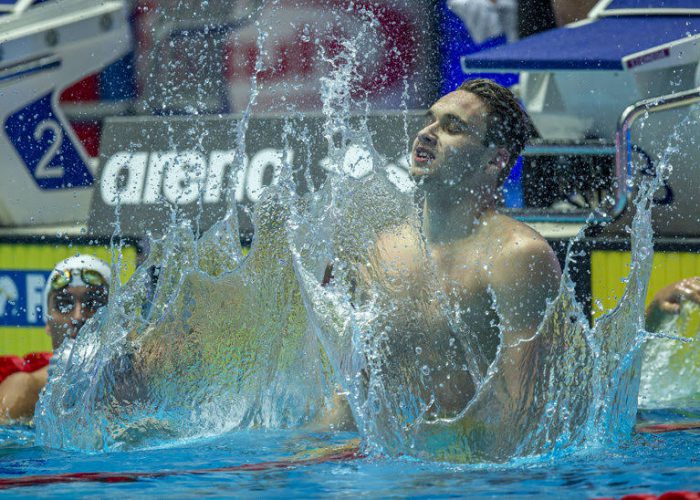 Kristof Milak celebrates victory in Gwangju in world-record time. Photo Courtesy: Patrick B. Kraemer