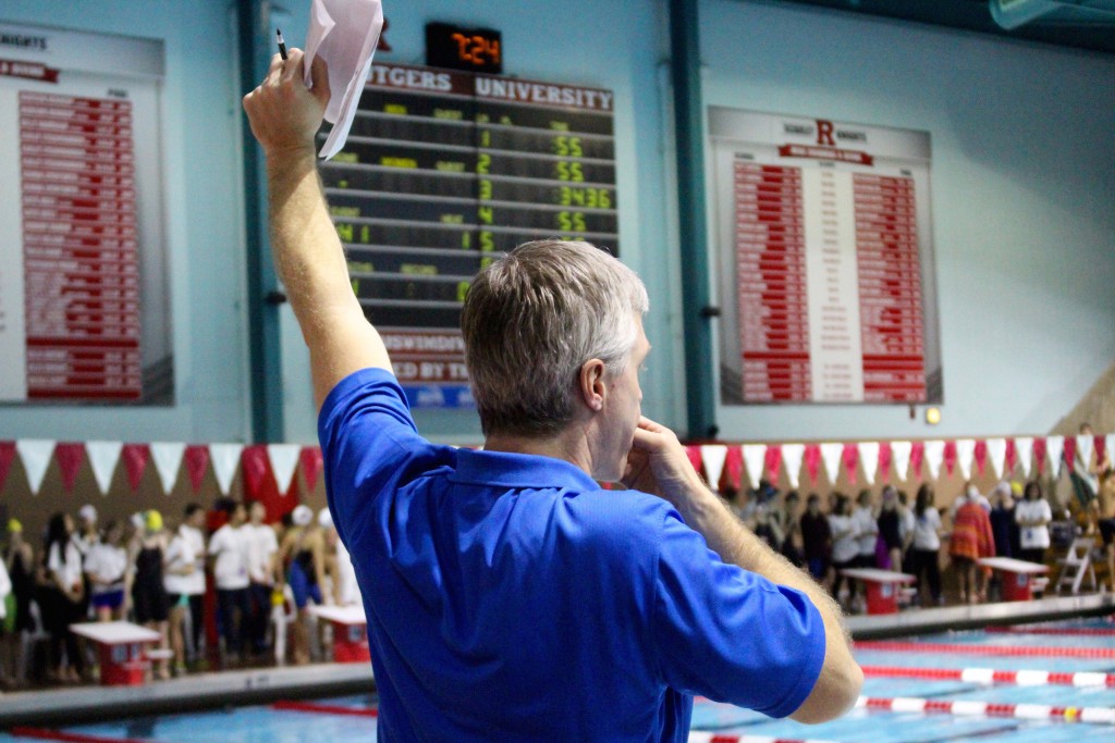 However, not all coaches feel the need for erratic calling. Tom Himes (NBAC) does not use any unique shouts during meets, confiding in his pre-race prep to inform his swimmers about what they need to do while in the water. Aside from his one-handed wave with a half-folded paper, Himes remains relatively mellow on the audience side of the pool, periodically motioning for his swimmers to speed up or slow down during particular portions of the race. His confidence is well deserved though, for he was named Age Group Coach of the Year, recognizing the “grassroots level of American swimming, an essential piece of the puzzle for building strong National teams and keeping swimmers in our great sport.”
