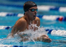 Texas senior Will Licon picked up his second individual title of the weekend in the 100 breast, just out-touching Missouri’s Fabian Schwingenschlogl at 50.68 to Fabian’s 50.77. This is the
