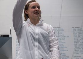 Simone Manuel obliterated all of the records in the 100 free, proving why she is the Olympic champion in the event, initiating a “boom-shocka-locka” from PA Announcer Sam Kendricks. Manuel,