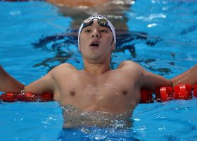 Italy’s Federica Pellegrini obliterated the field in the women’s 200 free at Arena Pro Swim Series meet in Indianapolis, leading from start to finish and posting a final time of 1:56.07. That