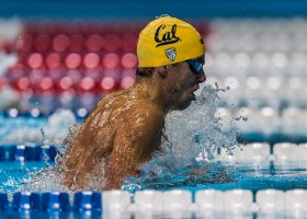 Men’s 200 Breast Josh Prenot of Cal battled for the title in the men’s 200 breast, moving up from an initial third place turn at the first 50 meter mark.