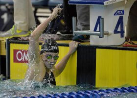 Cardinal’s Mallory Comerford upset touched out China’s Zhu Menghui to win the women’s 100 free at the Arena Pro Swim Series meet in Indianapolis. Comerford posted a time of 53.91, just ahead of
