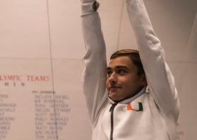 Miami freshman David Dinsmore dethroned Purdue sophomore Steele Johnson in the platform diving at the 2017 NCAA Championships Saturday night. Dinsmore was beat out by Johnson at the Olympic Trials