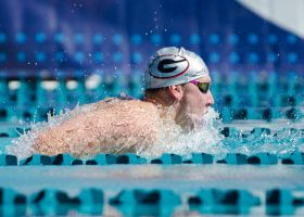 Women’s 100 Back Ali Deloof blasted to the top of the podium in finals of the women’s 100 back. Deloof posted a sizzling 59.43 for gold, making her the only
