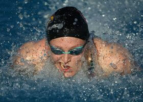 Women’s 100 Breast Katie Meili of SwimMAC held off a fast-charging Molly Hannis in finals of the women’s 100 breast. Meili led the race from start-to-finish, touching in a final 1:06.37.
