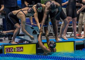 Ithaca Speedo Sectionals wrapped up tonight with a few swimmers grabbing one more event win. The Asphalt Green team of Charlotte Krevitt, Ana Olszewski, Sophia Zhang, and Isabel Gormley won the 200 freestyle relay by