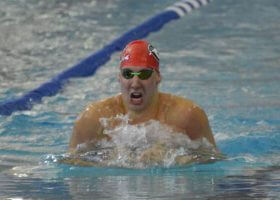 Race Pace Club’s Michael Andrew held off Missouri’s Michael Chadwick down the stretch in the men’s splash-and-dash, touching the wall in 22.38. Chadwick was just behind in 22.43. Taking third was New York