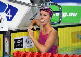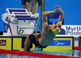Australia’s Emma McKeon pulled away from teammates Maddie Groves and Brianne Throssell down the stretch to capture gold in the 100 fly, and the Aussies ended up sweeping the top three spots. McKeon finished in