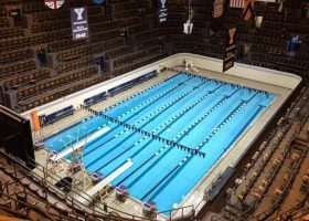 Yale’s Kiphuth Exhibition Pool Holds a Special Place in Swimming Lore In the center of Kiphuth Exhibition Pool stands a large, wooden desk. It’s an odd place for such a