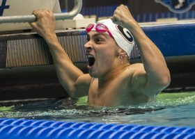 Georgia’s Luca Urlando saw his 100 backstroke NCAA record broken on Friday, and he didn’t want that to happen to his 200 fly record – and he wanted his first