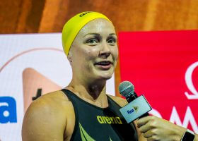 USA’s Chase Kalisz won both the 200 Butterfly and 200 IM on the first night of competition at the 2019 FINA Champions Series in Indianapolis. Kalisz took time after the
