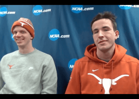 Texas seniors Jeff Newkirk and Townley Haas swam the third and fourth legs of the NCAA and American Record setting 800 free relay for the University of Texas on Wednesday night at the 2019
