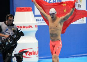 China’s Wang Jianjiahe clinched the distance hat trick with a gold medal and new Asian Games Record of 4:03.18. Wang already claimed gold medals this week in the 800 and 1500 free finals and