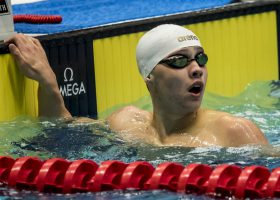 Once again, the women set the precedent and the men followed suit. After the U.S. women set the meet record in 4×200 free relay, the men matched the feat with