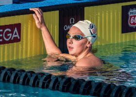 One more women’s event for the evening and one more record to be broken. The U.S. women lowered the mark in the 4×200 free relay, finishing in a time of