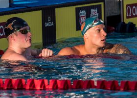 The United States fired back with another 1-2 finish of their own in the men’s 100 fly after Australia did it in the 400 free earlier in the night. Caeleb Dressel swam