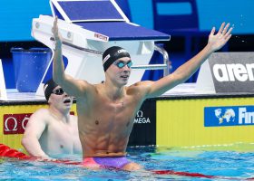 Russia’s Anton Chupkov made a run at the world record in the men’s 200 breast final, and he ended up falling just 13-hundredths short of Ippei Watanabe’s world record of 2:06.67. Chupkov finished in