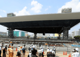 The Tokyo Metropolitan Government announced the construction of the 2020 Olympic and Paralympic swimming venue, including the huge roof of the Olympic Aquatic Center, is under construction for the 2020