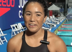 17-year-old Alexandra Crisera of Beach Cities swimming talked about her 200 back win on the second night of the 2018 Speedo Junior Nationals in Irvine, California. Crisera talked about swimming at Juniors