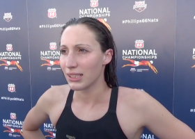 Ally McHugh of Penn State won her first career National Title in the 400 IM with a huge best time. McHugh credited her coaches and teammates at Penn State for pushing