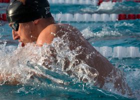 Three Olympians and several All-Americans highlighted the field in the men’s 100 breaststroke at the 2018 TYR Pro Swim Series in Santa Clara. Andrew Wilson used a quick start to