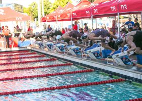 During the Saturday morning prelims session at the TYR Pro Swim Series in Santa Clara, Olympic gold medalists Ryan Murphy (men’s 100 back), Lilly King (women’s 100 breast) and Simone Manuel (women’s 100 free) all